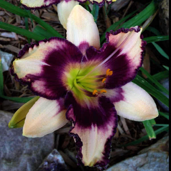 Cream white with blue purple. Photo #1/1 of daylily (hemerocallis 'blueberry puff'). Plant or animal product type. Daylily canadian border patrol by decadent daylilies123. Data specific to daylilies (edit).